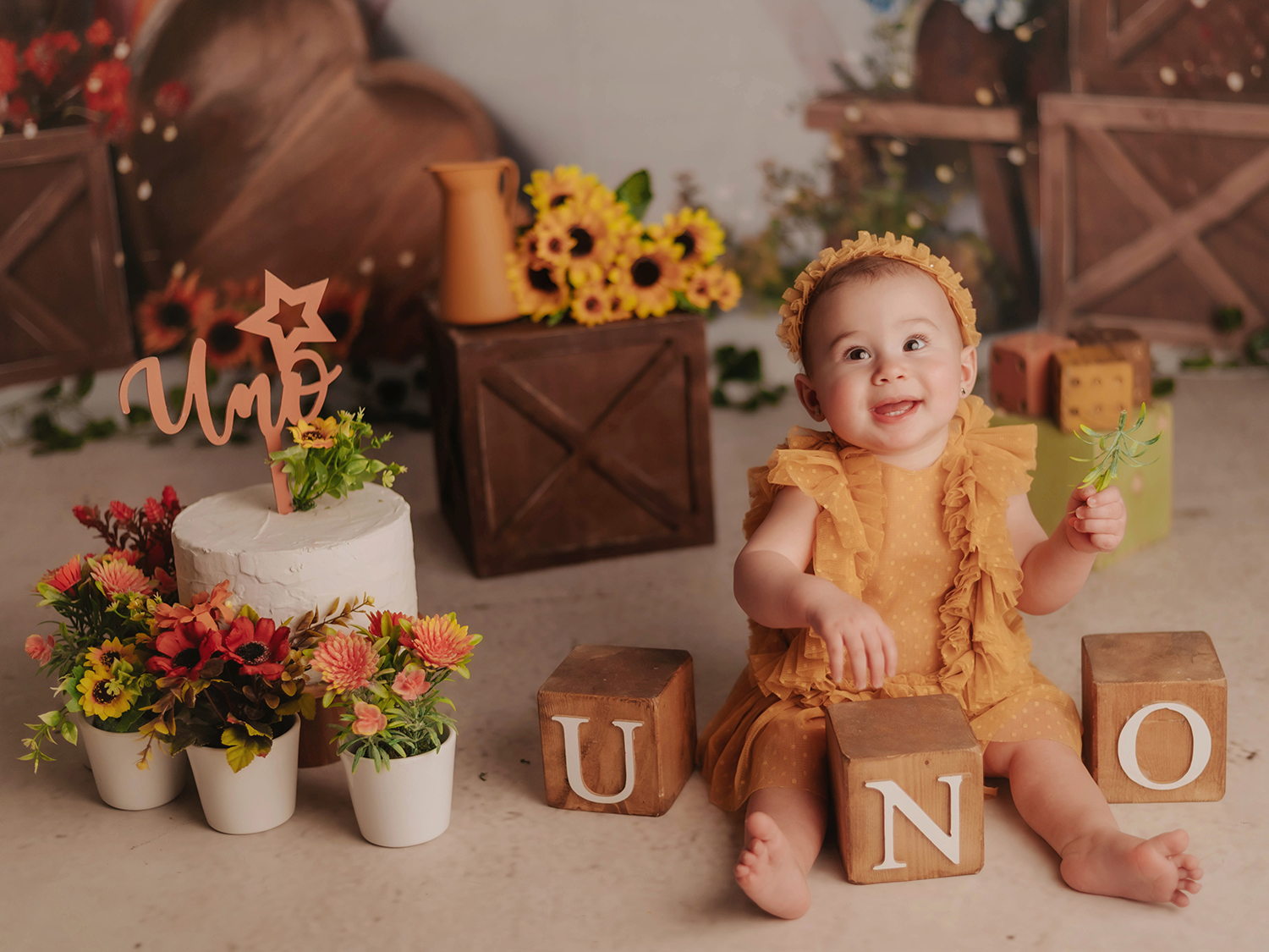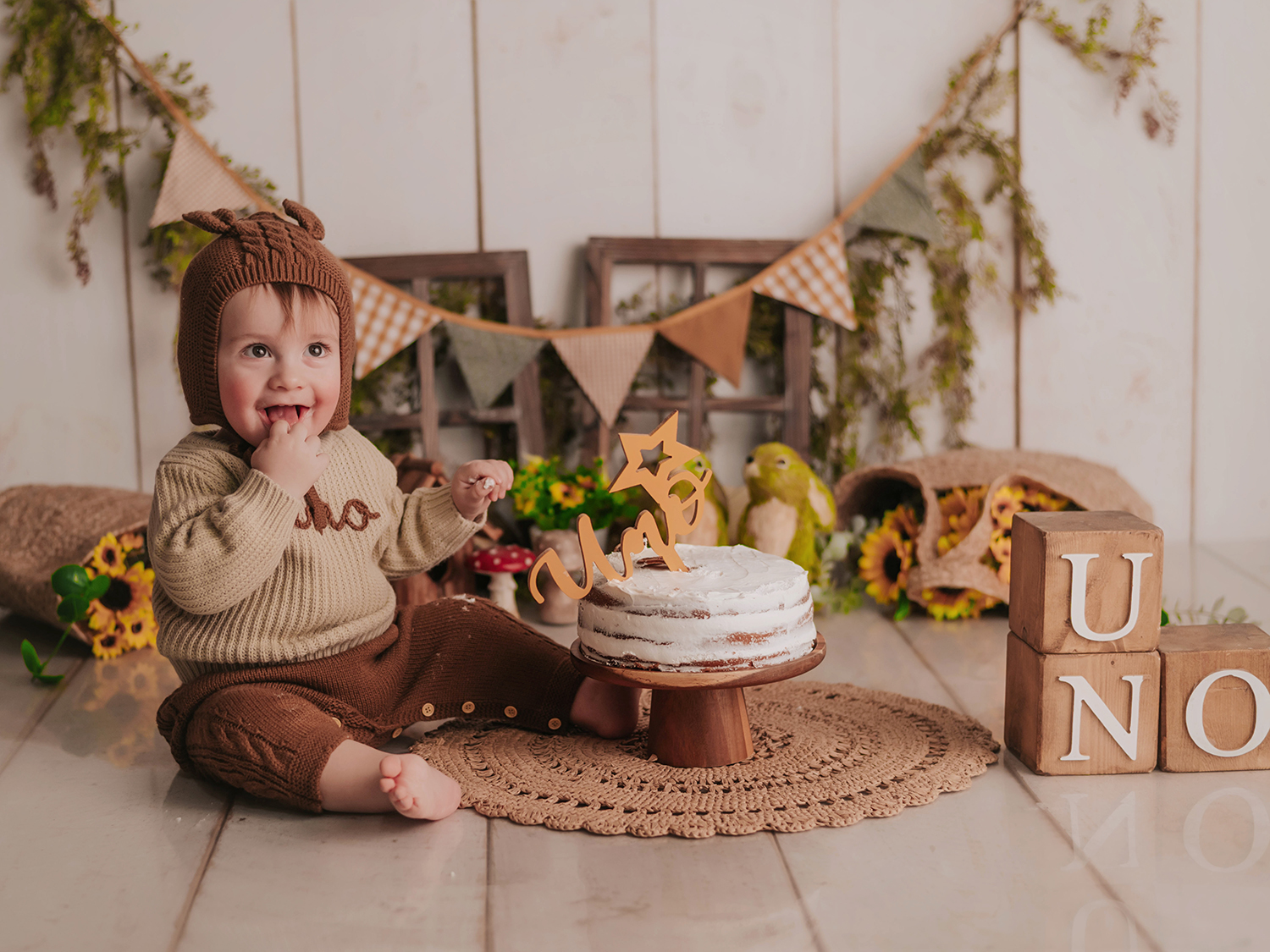 No tendrás que preocuparte por la ropita para la sesión, sólo en elegir los colores que más te gusten de nuestros decorados y nosotros los prepararemos todo para tu peque. Avísanos si tiene alguna intolerancia alimenticia o no quieres que tenga contacto aún con el dulce, en ese caso, tenemos una tarta decorativa con la que le podemos hacer las fotos.